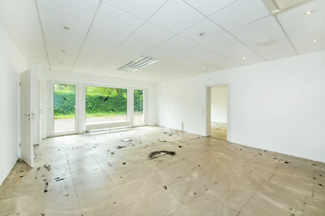 Großer Büro/Besprechungsraum mit 37 m² Fläche, die Luftigkeit und großzügigen Fensterflächen des Raumes wird Sie sicherlich begeistern. 2 größere Büros mit 38,6 m² und 27,1 m² stehen Ihnen zur Verfügung. Das kleinste Büro hat eine Fläche von 12,8 m². Der Empfang mit 9,9 m², 3 WCs, eine Garderobe und ein Abstellraum runden das Angebot ab.