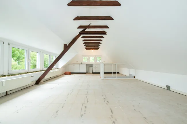 Im Dachgeschoss - erreichbar über eine kleine Außenfläche- hatten die Vormieter einen Aufenthaltsraum, mit circa 25 m² Fläche, eingerichtet.