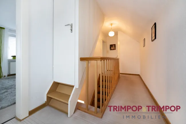 Bodenbeläge: * Fliesenboden im Erdgeschoss, im Wohnzimmer Parkettboden * Teppichboden im Obergeschoss