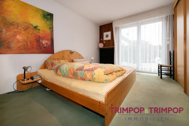 Über einen zweiten Flur, angrenzend an die Eingangsdiele, erreichen Sie den "Privatbereich". Hier befinden sich das Tageslichtbad so wie ein Zimmer (ca. 11 m²), beide nach vorne raus, und zwei weitere Zimmer (ca. 11 m² und 15 m²) zur Gartenseite. Das größere Zimmer, ebenfalls mit Austritt auf die Terrasse, wird mit Sicherheit Ihr Schlafzimmer, die beiden kleineren Zimmer eignen sich als Kinderzimmer, Ankleidezimmer oder auch als Büro bzw. separates Esszimmer.