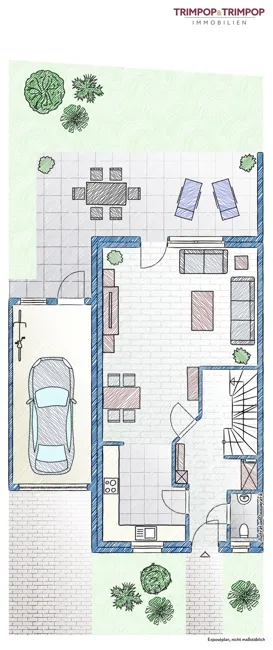 Terrasse/Garten: * pflegeleichter Garten * Sonnenterrasse * Zugang in die Garage *