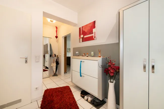 Ihre Eigentumswohnung befindet sich auf der Erkelenzer Straße in einem gepflegten Mehrfamilienhaus. Die Nachbarschaft ist bunt gemischt, Jung und Alt im lebendigen Miteinander. Eben typisch für eine Gegend, die nicht weit vom Zentrum entfernt wohnt. Die Straßen hier zeigen ihr Gesicht mit adrett gemachten Mehr- und Einfamilienhäusern.