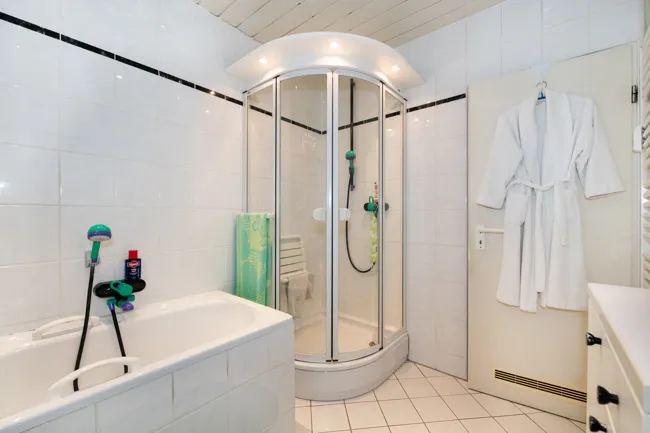 Das top gepflegte Bad hat eine Wanne, eine Eckdusche, ein WC und ein Waschbecken. Extra: das Gäste-WC. Immer praktisch, wenn es da ist.