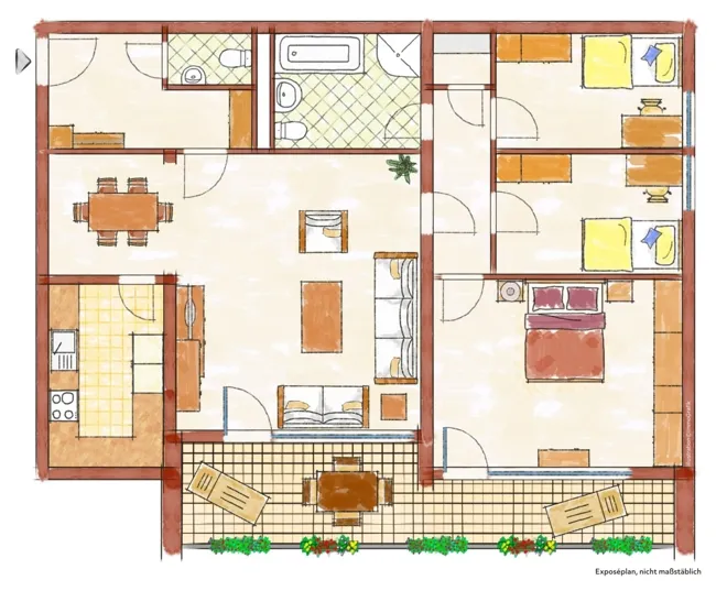 So leben Sie hier: Die vier Zimmer haben eine gehobene Ausstattung. Neben dem Wohn-/Esszimmer haben Sie in dieser Wohnung drei weitere Zimmer. Sie bieten sich als Schlafzimmer, Kinderzimmer, Arbeitszimmer oder auch für liebe Übernachtungsgäste an. Das größere Zimmer hat direkten Zugang zum Balkon.