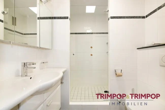 WELLNESS: Das innenliegende Bad wurde bereits modernisiert und entspricht mit bodentiefer Dusche und Handtuchheizung den heutigen Ansprüchen.