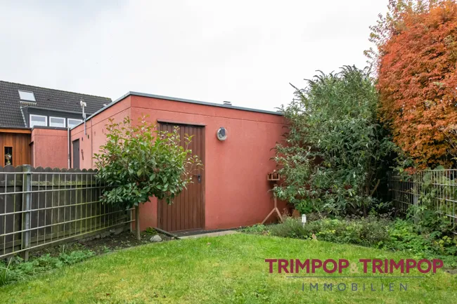 Der Garten ist klein und absolut pflegeleicht. Am Ende des Gartens haben Sie Zugang zu Ihrer Garage.