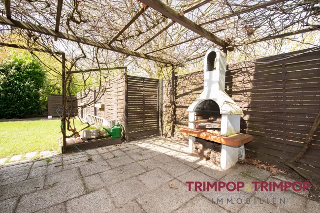 Die überdachte Terrasse hat über 18 m² Fläche, genug Platz für hübsche Blumenkübel, Tisch und Liegestuhl. Und natürlich kriegt sie Sonne, den ganzen Tag lang. Und direkt daneben, nur durch eine kleine Mauer abgetrennt haben Sie eine weitere Terrasse von etwa 15 m², zum Grillen oder Chillen.