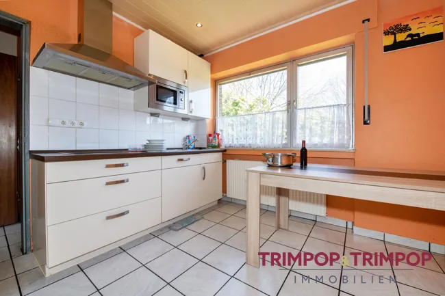 Im Erdgeschoss eine Diele und eine komplett leere Küche, die auf Ihre Planung wartet. Ein großes Wohn-Esszimmer, mit Zugang zur überdachten Terrasse, bietet genügend Raum für Ihre Einrichtungsideen. Im Jahr 1993 haben die Eigentümer einen großen Wintergarten seitlich angebaut. Hier war bisher ein Schlafraum und ein direkt anschließendes Wannenbad mit Fenster.