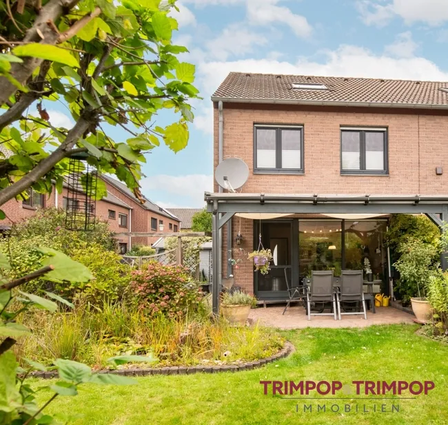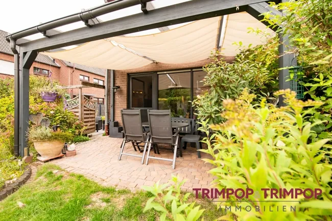 SONNE: Der gepflegte Garten in Südostausrichtung mit umlaufender Terrasse, Lounge-Ecke inbegriffen, wird den Hobbygärtner erfreuen. Auch Ihre Kinder werden nicht zu kurz kommen, auf den Sandkasten oder das Klettergerüst müssen sie nicht verzichten. Praktischerweise gibt es ein Gartenhaus seitlich vom Haus und ein Gartentörchen am Ende der Rasenfläche. Die Pergola mit Sonnenschutzsegeln sorgt im Sommer für ausreichend Schatten.