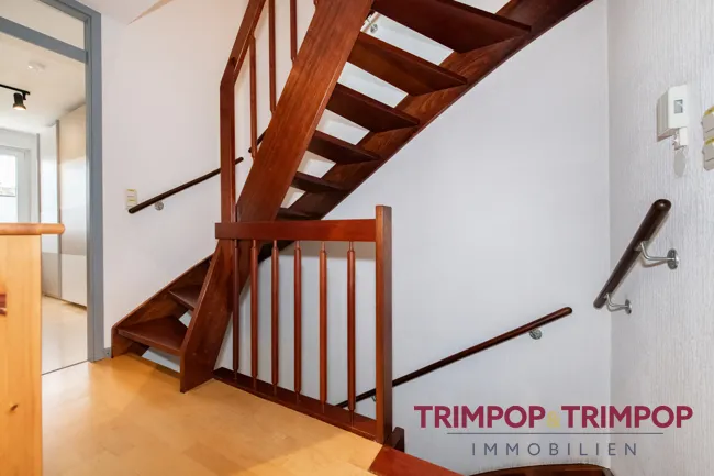 Im Obergeschoss finden Sie drei Zimmer und das Tageslichtbad. Hier richten Sie mit Sicherheit Ihr Schlafzimmer und zwei Kinderzimmer ein. Oberlichter in den Türrahmen sorgen für zusätzliche Helligkeit um Flur.
