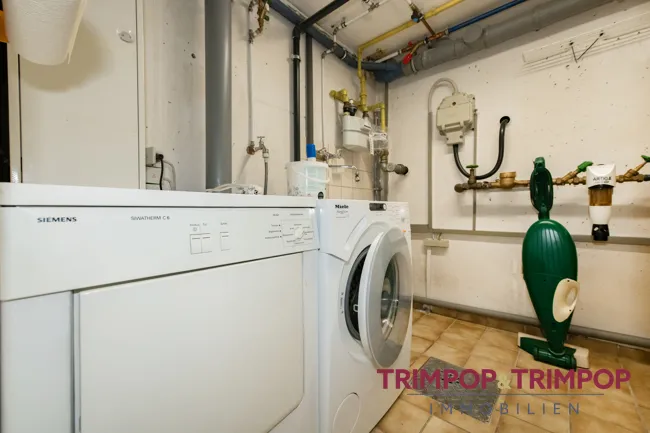 PRAKTISCH: Das Haus ist vollunterkellert, der ehemals als Partykeller genutzte Raum eignet sich als Home-Office oder Hobbyraum. Auch den Hausanschluss- und Heizungsraum mit Platz für Ihre Waschmaschine und einen Vorratsraum finden Sie hier.