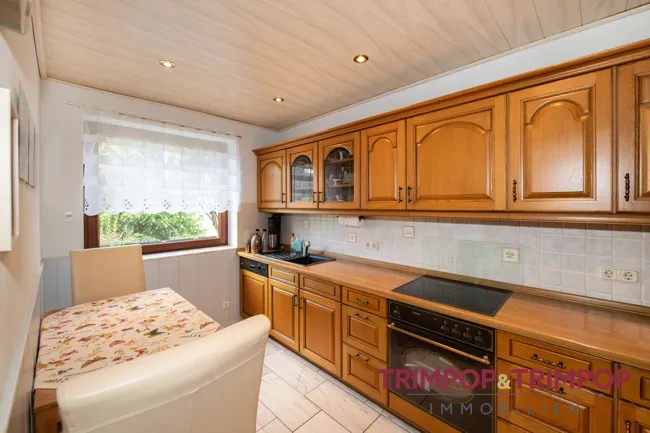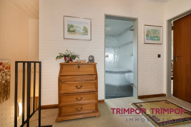 Keller: * zwei große Kellerräume * ein Raum mit Anschlussmöglichkeit für Waschmaschine und Trockner * der zweite Raum wurde zu einem Partykeller mit gemauerter Theke umgebaut * Sauna und Dusche