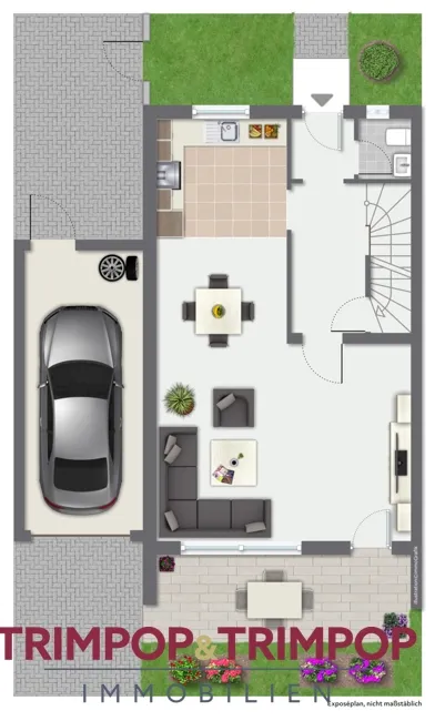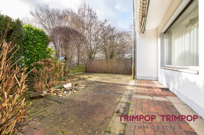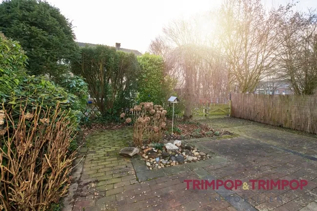 Ihnen gehört ein kleiner, pflegeleichter Garten mit Sträuchern und Bäumen. Die Terrasse mit Markise macht das Haus erst richtig rund: Hier kann man lesen, frühstücken, dinieren.