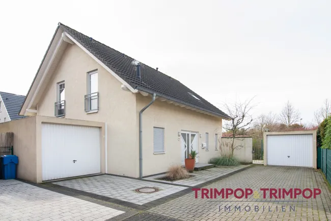 Gebäude: freistehendes Einfamilien-Fertighaus der Firma OKAL * Baujahr 2003 * 1 überlange Garage und 1 normale Garage *