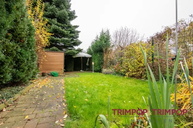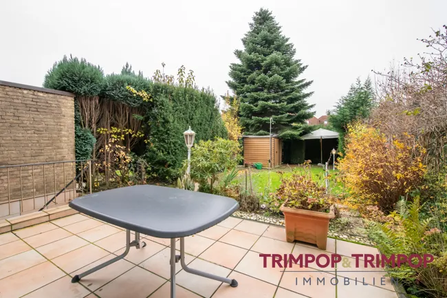 Das Haus verfügt über einen netten Garten, geschätzte 110 m² groß. Sträucher, Blumen, Rasen und ein kleines Gartenhaus mit Platz für Gärtners Werkzeug. Die Sonnenterrasse lädt mit ihrer Süd-Westlage zum Ausklingenlassen von langen, lauen Sommerabenden ein.