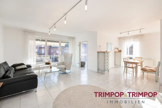 An die Diele angrenzend befindet sich der Mittelpunkt der Wohnung, das ca. 36 m² große Wohnzimmer mit dem optisch abgetrennten Essbereich. Eine wirklich tolle Aufteilung!