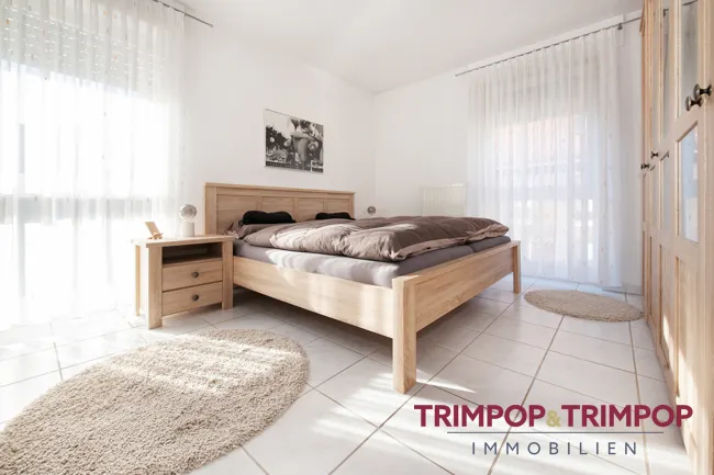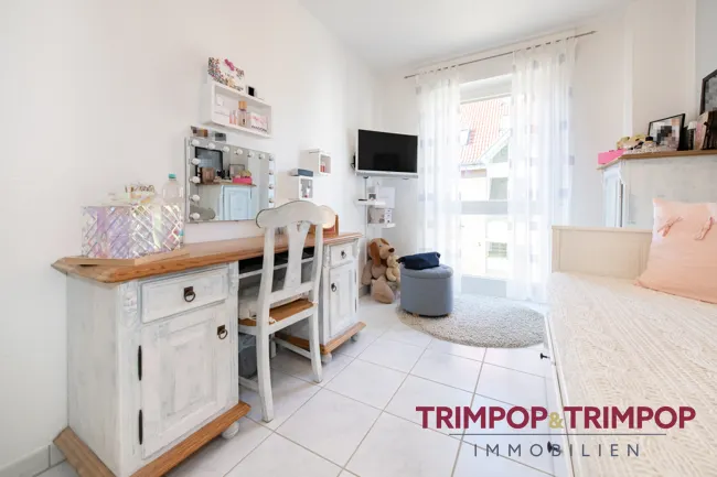 Ebenfalls von der Diele aus erreichbar befinden sich das Schlafzimmer und ein weiteres Zimmer, welches sich idealerweise als Kinderzimmer oder auch als Büro.