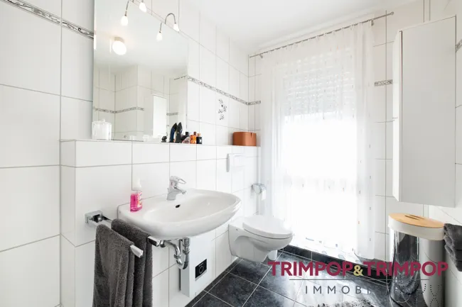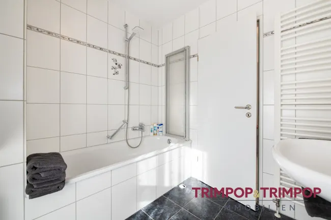 * Tageslichtbad mit Badewanne, Waschbecken, WC und Handtuchheizung *