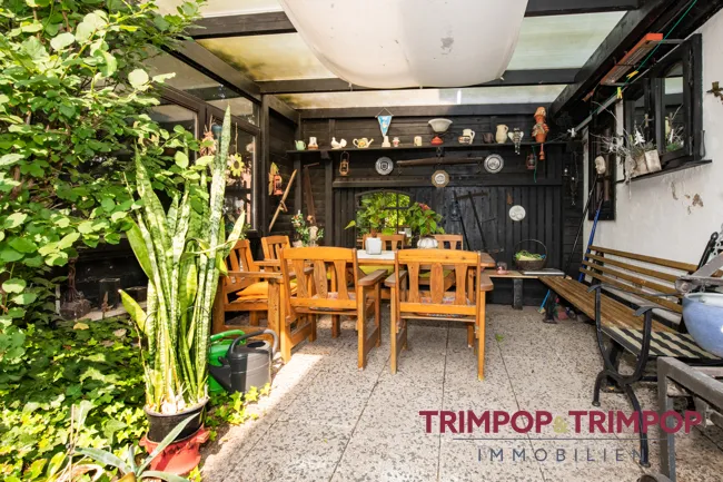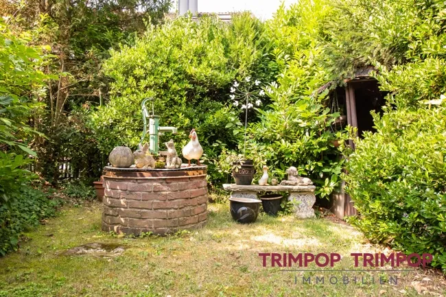 * Terrasse mit Pergola und angrenzendem Garten in Westausrichtung * die Pergola hat keine baurechtliche Genehmigung, hieraus kann sich eine Rückbauverpflichtung ergeben * Grundwasserbrunnen zur Gartenbewässerung *