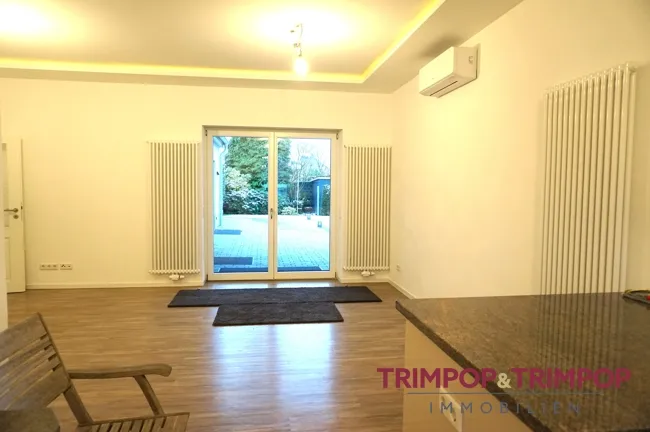 Ein schöner und geräumiger Flur bildet im Erdgeschoss den Ausgangspunkt. Hier befinden sich zur Linken das erste Zimmer, vielleicht Ihr neues Büro. Gegenüber liegt die Küche, der Eigentümer hat es sich nicht nehmen lassen, Ihnen eine neue, luxuriöse Einbauküche inkl. Kühl-/Gefrierkombi, Backofen, Induktionskochfeld und Spülmaschine namhafter Hersteller einzubauen, Hobbyköche werden sich hier mit Sicherheit wohlfühlen. Die offene Küche bildet mit dem angrenzenden Wohn-/Essbereich eine harmonische Einheit. Gesellige Abende mit Familie und Freunden sind hier vorprogrammiert, da keine Wand im Weg ist. Eine Klimaanlage sorgt an heißen Tagen für angenehme Temperaturen. Vom Wohn-/Essbereich haben Sie durch eine Flügeltüre auch Zutritt auf die Terrasse und in den Garten. Hier lassen sich im Sommer ungestörte Stunden verbringen und Kinder haben viel Platz zum Spielen. Ihre Gartengeräte können Sie bequem im Gartenhäuschen unterstellen.