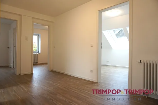 Über ein liebevoll aufbereitetes Holztreppenhaus erreichen Sie das Obergeschoss. Der Flur hell und luftig, die drei Schlafzimmer, jeweils mit eigener Klimaanlage, und das zweite Tageslichtbad, eine kleine Wellnessoase, mit Badewanne, bodentiefer Dusche, Waschbecken, Handtuchheizung und WC sind im Kreis angeordnet. Das größte Zimmer wird mit Sicherheit das neue Elternschlafzimmer, die beiden weiteren Räume mit jeweils ca. 10 m² eignen sich idealerweise als Kinderzimmer. Die Dachschrägen in Kombination mit dem tollen Boden versprühen eine ausgesprochene Wohlfühlatmosphäre und bieten viel Platz für Ihre Einrichtungsideen.
