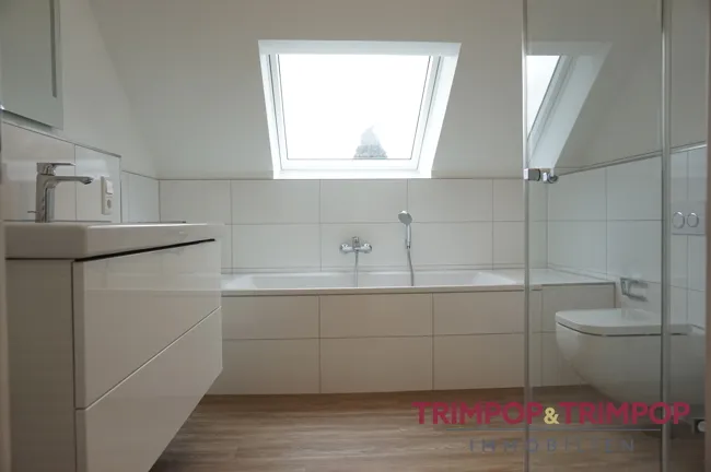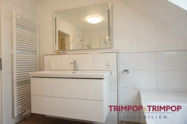 - Tageslichtbad im OG mit Dusche, Badewanne, WC, Waschbecken und Handtuchheizung