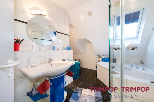 - Tageslichtbad mit Dusche, Badewanne, Waschbecken, WC und Handtuchheizung