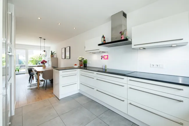 Küche: * Einbauküche der Firma Nolte von 2017 mit Einbaumöbeln und großem I Induktionskochfeld (Neff), Umlufthaube, Backofen in Bequemhöhe (Neff), Kühl-Gefrierkombination, Spülmaschine (Siemens) *