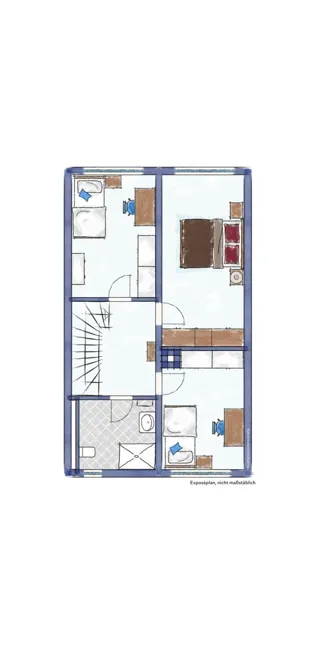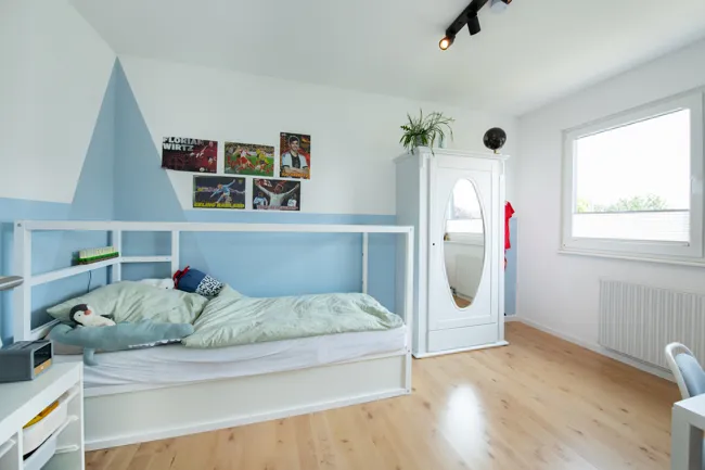 Drei weitere Zimmer liegen im Obergeschoss. Die Zimmer sind 17 m², 12 m² und 11 m² groß. Die Zimmer wollen Ihnen und den Kindern oder netten Übernachtungsgästen Guten Morgen und