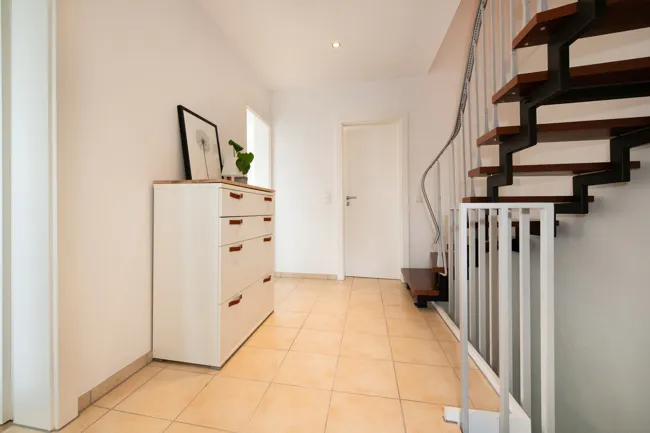 Ihr neues Reihenendhaus befindet sich in einer idyllischen Seitenstraße, die überwiegend von Anwohnern befahren wird. Die Nachbarschaft ist geprägt von gepflegten Einfamilienhäusern, in denen freundliche und hilfsbereite Menschen wohnen.