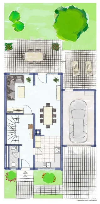 Garten: * große Terrasse vor dem Wohnzimmer und an der Garage *