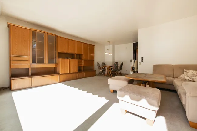 Besonders praktisch sind die zwei Garagen, die nur wenige Schritte vom Haus entfernt sind – eine wahre Rarität. Weitere Highlights sind die gut erhaltene Einbauküche, die elektrische Sonnenmarkise und der maßgefertigte Einbaukleiderschrank im Elternschlafzimmer.