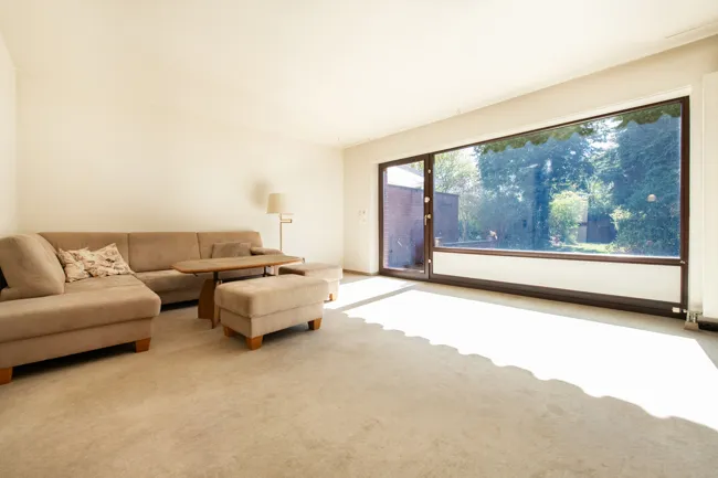 In den Wohnräumen sorgt Teppichboden für Gemütlichkeit, während Diele, Küche, Gäste-WC und Keller mit Fliesen und PVC ausgestattet sind.