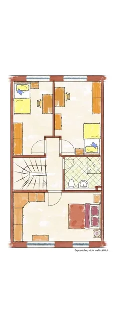 Die Wohnfläche erstreckt sich über das Erdgeschoss und Obergeschoss, das Dachgeschoss (Nutzfläche) wurde bis auf einen kleinen Speicherbereich zu Wohnzwecken ausgebaut.