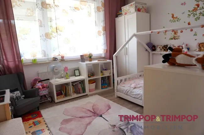 Über den zweiten, kleineren Flur erreichen Sie das innenliegende Bad mit Badewanne, WC und Waschbecken, das zweite Zimmer, was als Kinderzimmer genutzt werden kann, und das geräumige Schlafzimmer. Große Fenster lassen viel Licht herein und lassen die beiden Räume hell erstrahlen. Weitere Details zur Aufteilung der Wohnung entnehmen Sie dem Exposéplan.