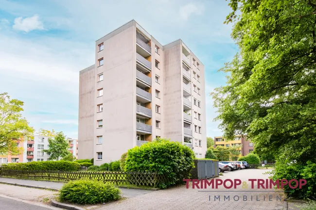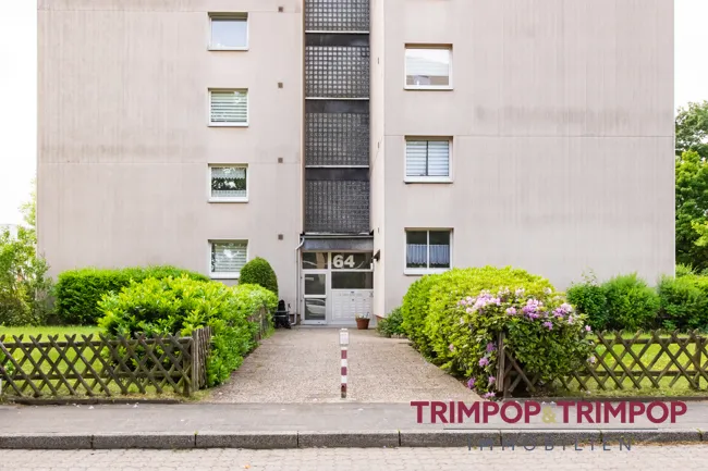 Das im Jahr 1969 errichtete Mehrfamilienhaus mit Aufzug hat insgesamt 40 Wohneinheiten. In diesem Haus wohnen überwiegend Eigentümer. Durch den Aufzug und den am Eingang befindlichen Treppenlift sind die Wohnungen auch für Senioren sehr interessant. Die zum Verkauf anstehende Wohnung liegt im Erdgeschoss mit Südwestausrichtung und ist wie folgt ausgestattet: