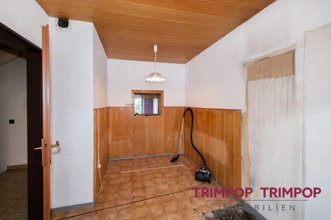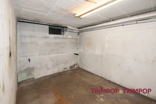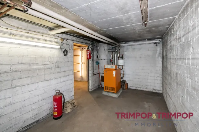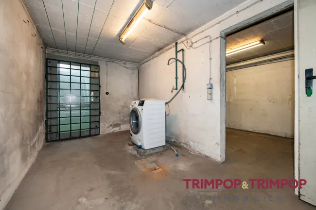 NÜTZLICHES: Das Haus ist vollunterkellert, teilweise mit Feuchtigkeitsschäden, und bietet so genügend Stauraum. Neben dem Haus befindet sich ein überdachter Stellplatz für Fahrräder und die Mülltonnen, sogar ein Durchgang zum Garten ist vorhanden.