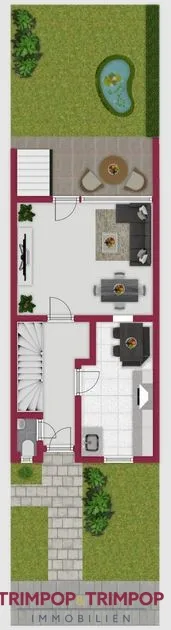 SONNE: Das Haus verfügt über eine ca. 17 m² große Terrasse mit Garten und Gartenteich, Westausrichtung inklusive. Der Hobbygärtner wird sich hier wohlfühlen und auf der Terrasse sind im Sommer gesellige Stunden und Grillabende vorprogrammiert.