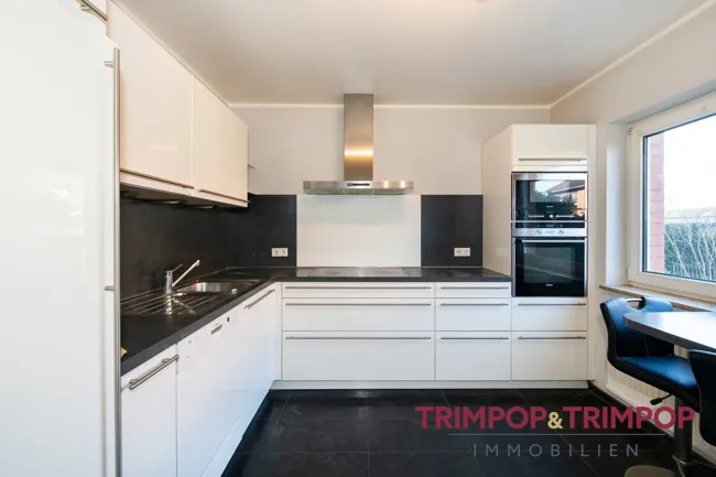 KOCHEN: Die Küche ist klassisch ausgestattet und hat alles, was Sie brauchen. Einen Herd mit Induktionskochfeld und Backofen, inkl. Dunstabzugshaube, einen Kühlschrank und eine Spülmaschine.