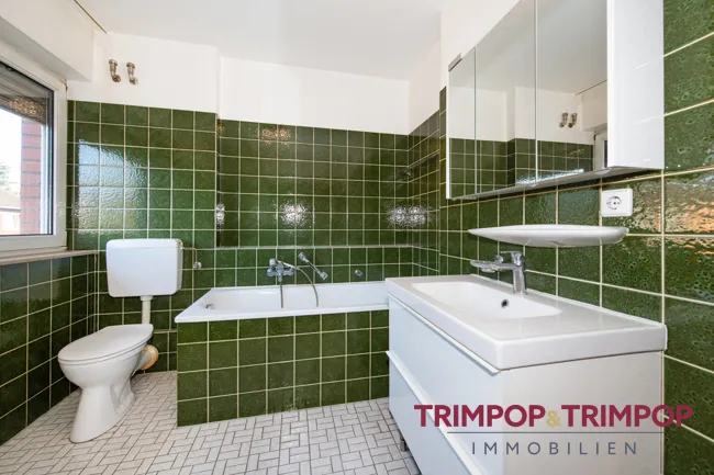 BAD: Es ist alles da, es funktioniert auch alles – aber beide Bäder könnte eine Frischzellenkur vertragen. Im Eingangsbereich finden Sie ein Gäste-WC.