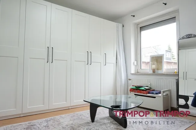 OBERGESCHOSS: In 2007 saniert, verfügt die Wohnung auf ca. 70 m² über eine große Diele, von der Sie aus Zutritt zu drei Zimmern, der Küche und dem Tageslichtbad mit Dusche und Wanne haben. Die Zimmer haben eine tolle Größe und werden als Schlafzimmer, Wohn-/Esszimmer und Ankleidezimmer/Büro genutzt. Vom Wohn-/Esszimmer haben Sie Zutritt zum Balkon, wo es Platz für eine Lounge-Ecke und den Grill gibt.
