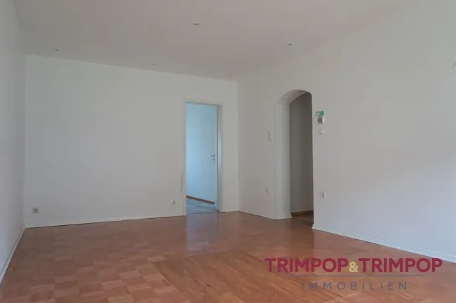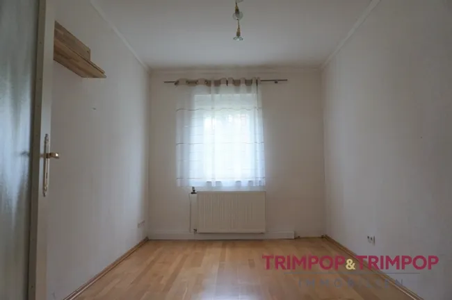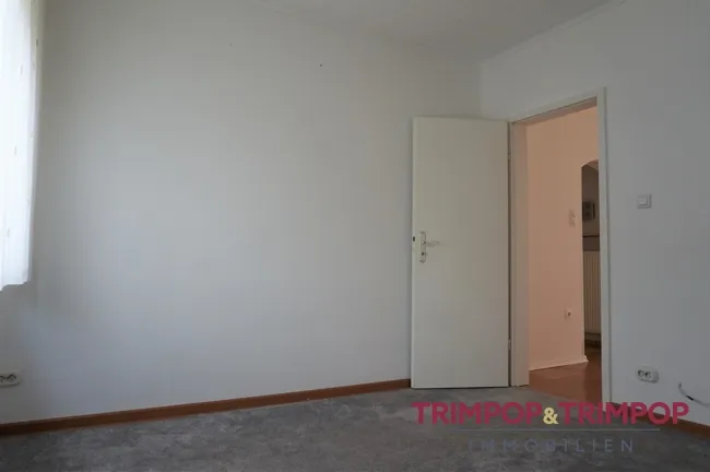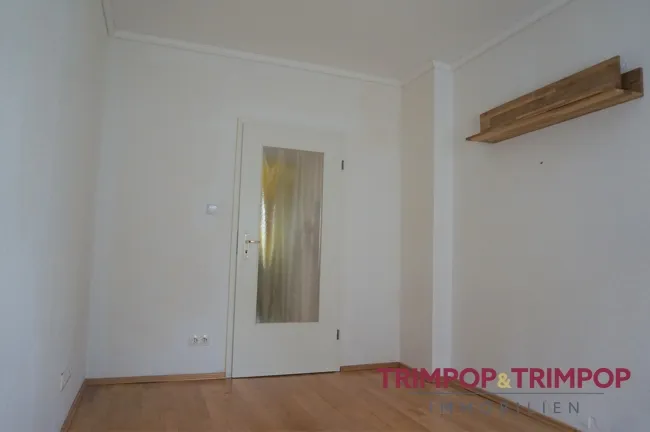 Zur Rechten befindet sich das erste Zimmer, welches sich als Büro oder Ankleidezimmer eignet. Am Ende des Flurs gelangen Sie in das gemütliche Wohnzimmer mit Austritt auf den nach Westen ausgerichteten Balkon. An das Wohnzimmer angeschlossen ist das Schlafzimmer.