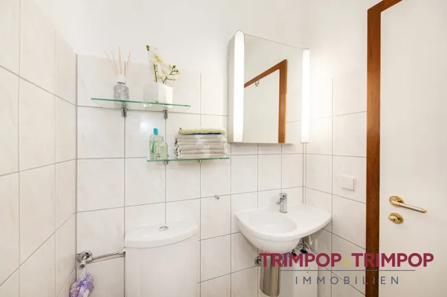 WELLNES: Im Obergeschoss befindet sich das Tageslicht - Badezimmer mit Duschkabine, Waschbecken und WC, im Erdgeschoss gibt es praktischerweise ein Gäste-WC.