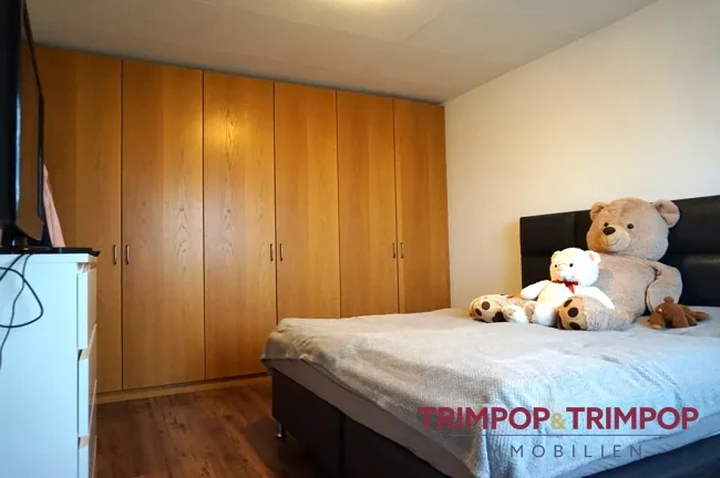 Das große Schlafzimmer hat einen tollen Einbauschrank und einen Laminatboden in warmen, dunklen Farben, der eine wertige Atmosphäre verleiht. Das dritte Zimmer eignet sich perfekt als Büro oder Gästezimmer.