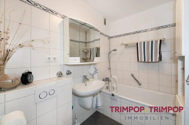 - innenliegendes Badezimmer mit Badewanne, Waschbecken und WC, in 2013 erneuert