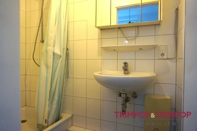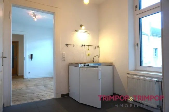 Die Küche ist nicht groß, bietet aber Platz für alles, was man zum Kochen und Essen so braucht, die kleine Single-/Miniküche mit Kochfeld, Kühlschrank und Spüle ist bereits vorhanden und in der Miete enthalten.
