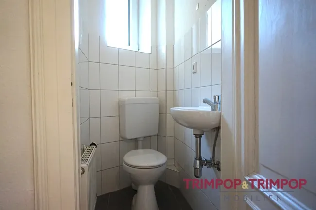 Zur Wohnung gehört außerdem ein eigenes Kellerabteil, die Waschmaschine können Sie bequem in dem von der Hausgemeinschaft genutzten Waschraum abstellen. Öffentliche Parkplätze finden Sie vor dem Haus.