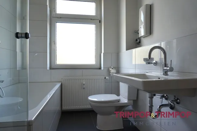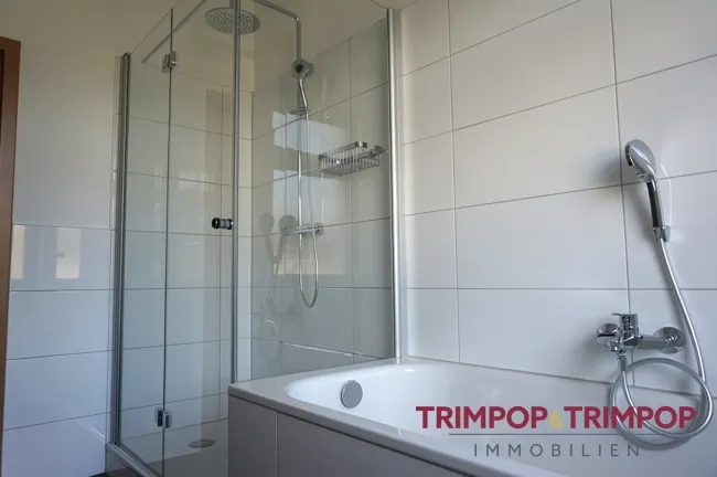 - in 2020 modernisiertes Tageslichtbad mit Dusche, Badewanne, Waschbecken und WC