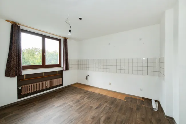 Die über 13 m² große Küche ist ein Raum voller Möglichkeiten und wartet nur darauf, von Ihnen kreativ gestaltet zu werden. Die Anschlüsse sind bereits vorhanden, sodass Sie Ihrer kulinarischen Fantasie freien Lauf lassen können.