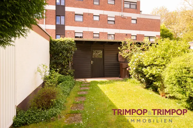 SONNE: Wer wünscht es sich nicht, den eigenen, nach Westen ausgerichteten Garten mit schöner Terrasse für gesellige Stunden und laue Sommerabende im Kreise der Familie und mit Freunden?! Eine schattenspendende Markise, das Gartenhaus für die Gartengeräte, alles da, auch an den Wasseranschluss wurde selbstverständlich gedacht!